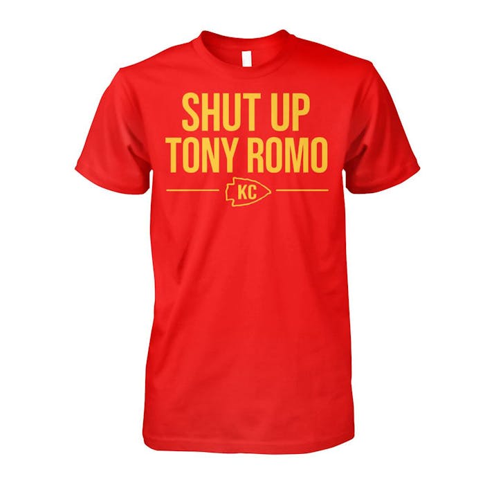 The Unofficial Sunday Anthem: Why Every Kansas City Fan Needs the "Shut Up Tony Romo" Shirt If you’re a member of the Red Kingdom, your Sundays follow a very specific ritual. You’ve got the smoked brisket prepped, your lucky Patrick Mahomes jersey on, and the volume turned up hi